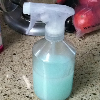 I hear this is really awesome and smells so good and cheap to make. And you can spray it on furniture and it won't leave any residue! You'll need a quarter cup of the Downy beads, four tablespoons of baking soda and one cup of boiling water! Plus, of course, an empty spray bottle.